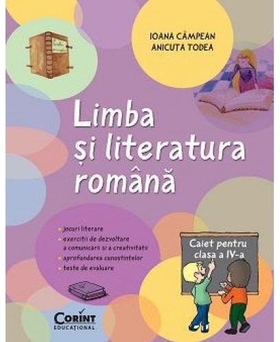 • jocuri literare • exerciţii de dezvoltare a comunicării şi a creativităţii • aprofundarea cunoştiinţelor • teste de evaluare Lucrarea de faţă se doreşte a fi un ghid pentru orele de limba şi literatura română, conform obiectivelor vizate în actualul curriculum. Este un auxiliar didactic destinat elevilor care vor să exploreze jocul literar, care vor să cunoască drumul spre lumea minunată a lecturilor, unde copilul devine protagonistul tuturor întâmplărilor fanteziei. Caietul pentru clasa a IV-a îşi doreşte să parcurgă alături de elevi, profesori şi părinţi un drum interdisciplinar. Tocmai de aceea, punctul de plecare ales este o poezie sau o informaţie de tipul „Ştiaţi că...?”, oferind astfel cadrelor didactice un alt start în abordarea fiecărei teme în parte. Fiecare unitate tematică surprinde mai multe planuri: înţelegerea textului, elemente de construcţie a comunicării, probleme de gramatică, ortografie şi punctuaţie, precum şi exerciţii destinate dezvoltării creativităţii. Sperăm ca drumul prin minunată lume a poveştilor să le facă plăcere şi să le fie util atât elevilor, cât şi dascălilor şi părinţilor.