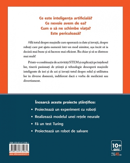 Comandă online Inteligența artificială. Mașini care gândesc și roboți inteligenți – cu activități științifice pentru copii la 47,60 lei isbn 9789734731961, tiparită la editura Paralela 45 face parte din colecția ENCICLOPEDIA PUSTILOR în anul 2020. Cartea poate fi livrată în circa 2 zile cu plata ramburs sau online cu cardul.