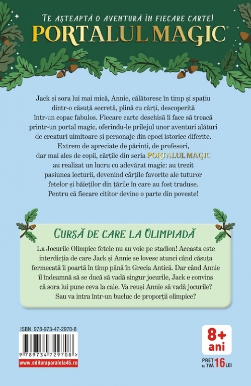 Comandă online cartea "Cursă de care la Olimpiadă. Portalul Magic nr. 16" la 23,26 lei Magic Tree House #16. Hour of the Olympics isbn 9789734729708, tiparită la editura Paralela 45 face parte din colecția SERIA PORTALUL MAGIC. Cartea poate fi livrată în circa 2 zile cu plata ramburs sau online cu cardul.