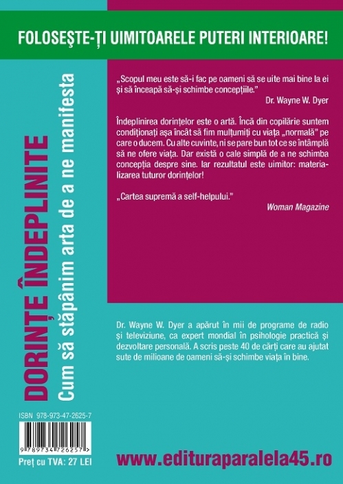 Dr. Wayne W. Dyer a apărut în mii de programe de radio și televiziune, ca expert mondial în psihologie practică și dezvoltare personală. A scris peste 40 de cărți care au ajutat sute de milioane de oameni să-și schimbe viața în bine.