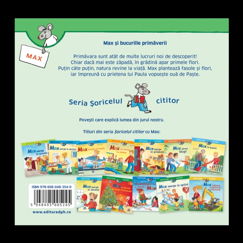 Max și bucuriile primăverii face parte din seria „Șoricelul cititor” – povești care explică lumea din jurul nostru și se adresează tuturor copiilor cu vârsta peste 3 ani.