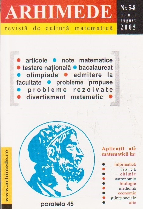 Comandă online cartea "Arhimede - Revista de cultura matematica, Nr. 5-8/2005" la 4,10 lei scrisă de Petrus Alexandrescu, tiparită la editura Paralela 45 face parte din colecția REVISTA ARHIMEDE în anul 2005. cu plata ramburs sau online cu cardul. Momentan titlul "Arhimede - Revista de cultura matematica, Nr. 5-8/2005" nu este disponibil însa vă puteți înscrie pentru a fi notificat în momenul reaprovizionarii.