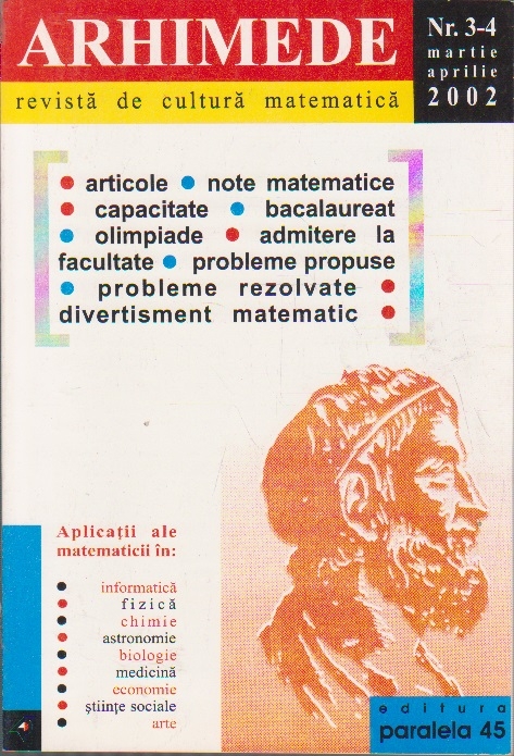 Comandă online cartea "Arhimede - Revista de cultura matematica, Nr. 3-4/2002" la 4,10 lei scrisă de Petrus Alexandrescu, tiparită la editura Paralela 45 face parte din colecția REVISTA ARHIMEDE în anul 2002. cu plata ramburs sau online cu cardul. Momentan titlul "Arhimede - Revista de cultura matematica, Nr. 3-4/2002" nu este disponibil însa vă puteți înscrie pentru a fi notificat în momenul reaprovizionarii.