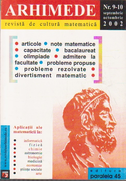 Comandă online cartea "Arhimede - Revista de cultura matematica, Nr. 9-10/2002" la 4,10 lei scrisă de Petrus Alexandrescu, tiparită la editura Paralela 45 face parte din colecția REVISTA ARHIMEDE în anul 2002. cu plata ramburs sau online cu cardul. Momentan titlul "Arhimede - Revista de cultura matematica, Nr. 9-10/2002" nu este disponibil însa vă puteți înscrie pentru a fi notificat în momenul reaprovizionarii.