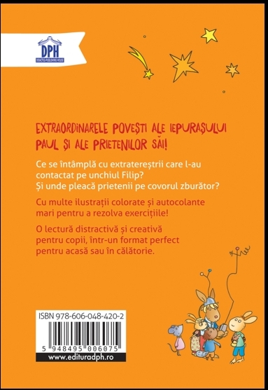 Cartea, pe lângă povestea iepurașului, conține diverse activități care îi vor captiva pe cei mici și le vor dezvolta creativitatea și abilitățile de învățare: exerciții de desenat și colorat, găsește perechea, găsește diferențele, unește punctele, trasează grafisme și multe altele.