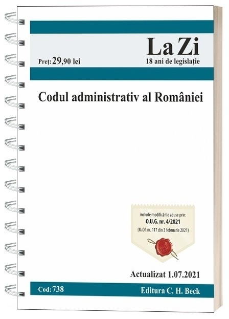 Comandă online cartea "Codul administrativ al Romaniei. Cod 738. Actualizat la 01.07.2021" la 34,76 lei isbn 9786061811175 scrisă de Editura C.H. BECK, tiparită la editura CH Beck în anul 2021. cu plata ramburs sau online cu cardul. Momentan titlul "Codul administrativ al Romaniei. Cod 738. Actualizat la 01.07.2021" nu este disponibil însa vă puteți înscrie pentru a fi notificat în momenul reaprovizionarii.