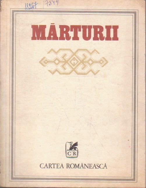 Comandă online cartea "Marturii - Articole, Eseuri (Literare si Politice)" la 20,30 lei , tiparită la editura Cartea Romaneasca în anul 1979 cu un număr de 478 pagini de anticariat (foarte buna). Livrare din stoc cu plata ramburs sau online cu cardul.