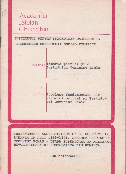 Comandă online cartea "Transformari Social-Economice si Politice in Romania in Anii 1918-1921. Crearea Partidului Comunist Roman - Etapa Superioara in Miscarea Revolutionara si Democratica din Romania. (Tema 19)" la 10,50 lei scrisă de Gheorghe Moldoveanu, tiparită la editura Academia Stefan Gheorghiu face parte din colecția Istoria patriei si a Partidului Comunist Roman în anul 1976. cu plata ramburs sau online cu cardul. Momentan titlul "Transformari Social-Economice si Politice in Romania in Anii 1918-1921. Crearea Partidului Comunist Roman - Etapa Superioara in Miscarea Revolutionara si Democratica din Romania. (Tema 19)" nu este disponibil însa vă puteți înscrie pentru a fi notificat în momenul reaprovizionarii.
