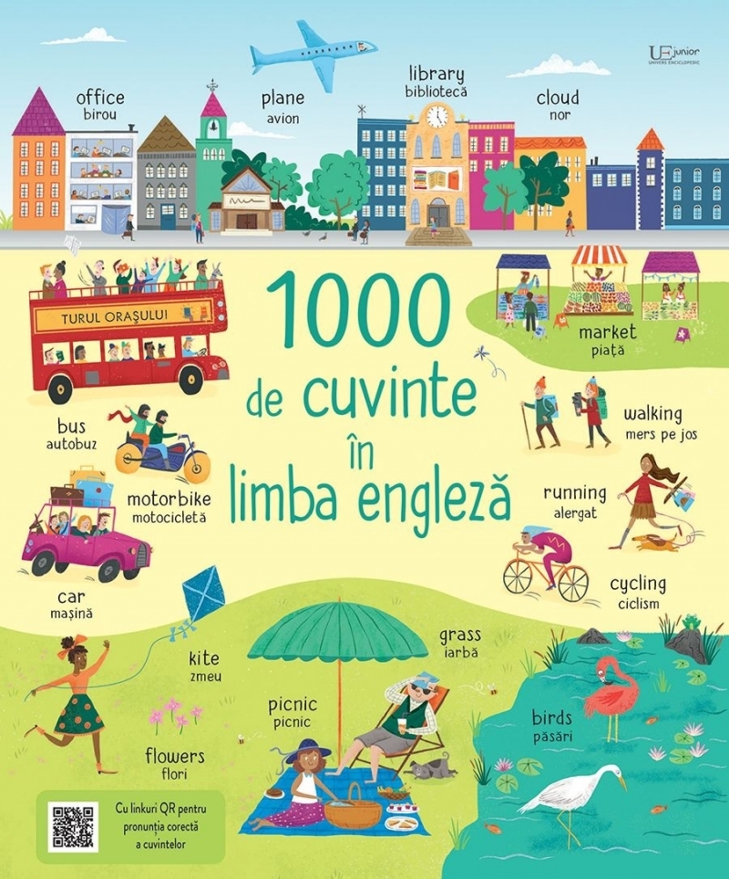 Primele 1000 de cuvinte pe care copiii ar trebui să le învețe atunci când încep să studieze limba engleză. Organizate tematic, acestea li se vor dezvălui prin desene amuzante, transformând activitatea de învățare într-un joc plăcut.