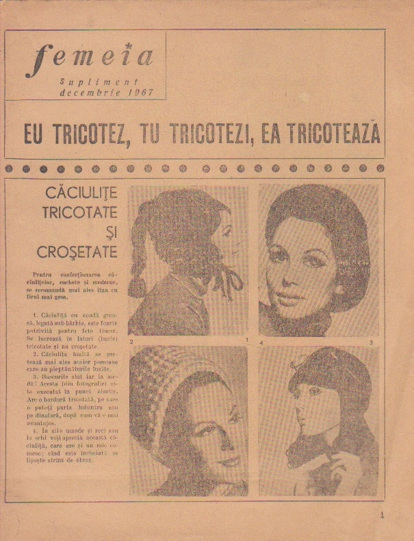 Comandă online Femeia - Supliment Decembrie 1967 - Eu tricotez, tu tricotezi, ea tricoteaza la 6,20 lei, tiparită la editura Revista Femeia face parte din colecția Femeia în anul 1967 cu un număr de 32 pagini. cu plata ramburs sau online cu cardul. Momentan titlul Femeia - Supliment Decembrie 1967 - Eu tricotez, tu tricotezi, ea tricoteaza nu este disponibil însa vă puteți înscrie pentru a fi notificat în momenul reaprovizionarii.