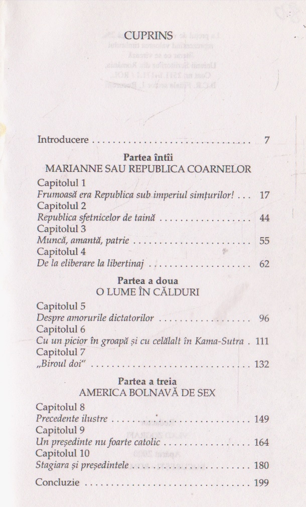 Atat de mediatizata legatura intre Monica Lewinsky si Bill Clinton, relatia misterioasa intre fratii Kennedy si Marilyn Monroe, pasiunea lui Hitler pentru Eva Braun - sunt exemple celebre privind repercursiunile directe si indirecte ale vietii intime a oamenilor de stat asupra actiunilor si deciziilor lor politice. Plina de episoade rocambolesti, cartea lui Patrick Girard dezvaluie fata ascunsa a celor care au determinat cursul istoriei.