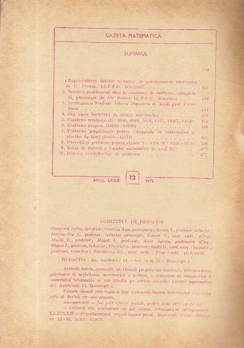 Gazeta Matematica, 6 numere (Septembrie 1967, Ianuarie-Aprilie si Iunie 1968)