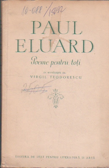 Comandă online Poeme pentru toti la 10,50 lei scrisă de Paul Eluard Virgil Teodorescu, tiparită la editura Editura de Stat pentru Literatura si Arta în anul 1955. cu plata ramburs sau online cu cardul. Momentan titlul Poeme pentru toti nu este disponibil însa vă puteți înscrie pentru a fi notificat în momenul reaprovizionarii.