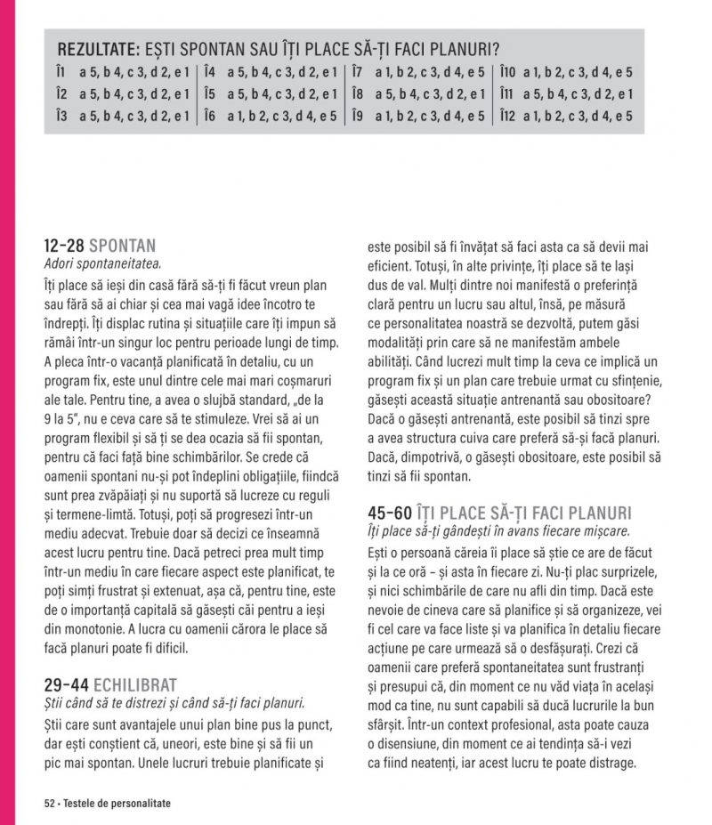 Câteva dintre testele de personalitate incluse în această lucrare sunt: