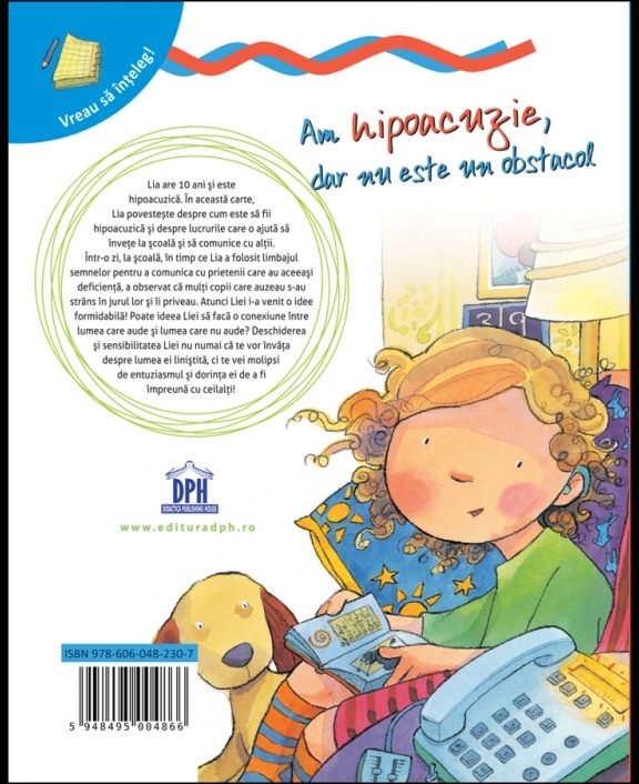 Cartea Am hipoacuzie, dar nu este un obstacol face parte din seria „Vreau să înțeleg” și vă prezintă povestea unei fetițe care are deficiență de auz.