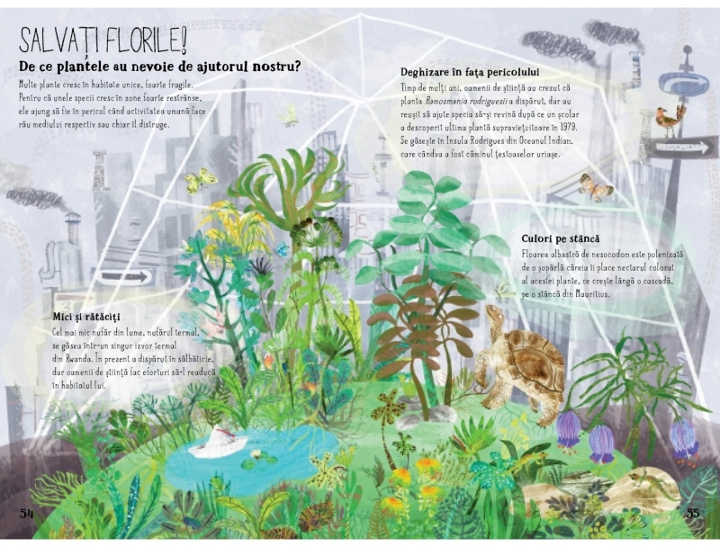 În paginile de început, cititorii vor învăța totul despre botanică, inclusiv cum să recunoască diferite tipuri de flori. Paginile următoare ilustrează diferitele habitate care găzduiesc flora, cum ar fi plantele urcior, nuferii uriași și floarea-soarelui. Cititorii vor descoperi ce flori sunt pe cale de dispariție și de ce unele flori sunt parfumate sau colorate, ca să nu mai vorbim despre detaliile fascinante ale florilor carnivore și otrăvitoare.