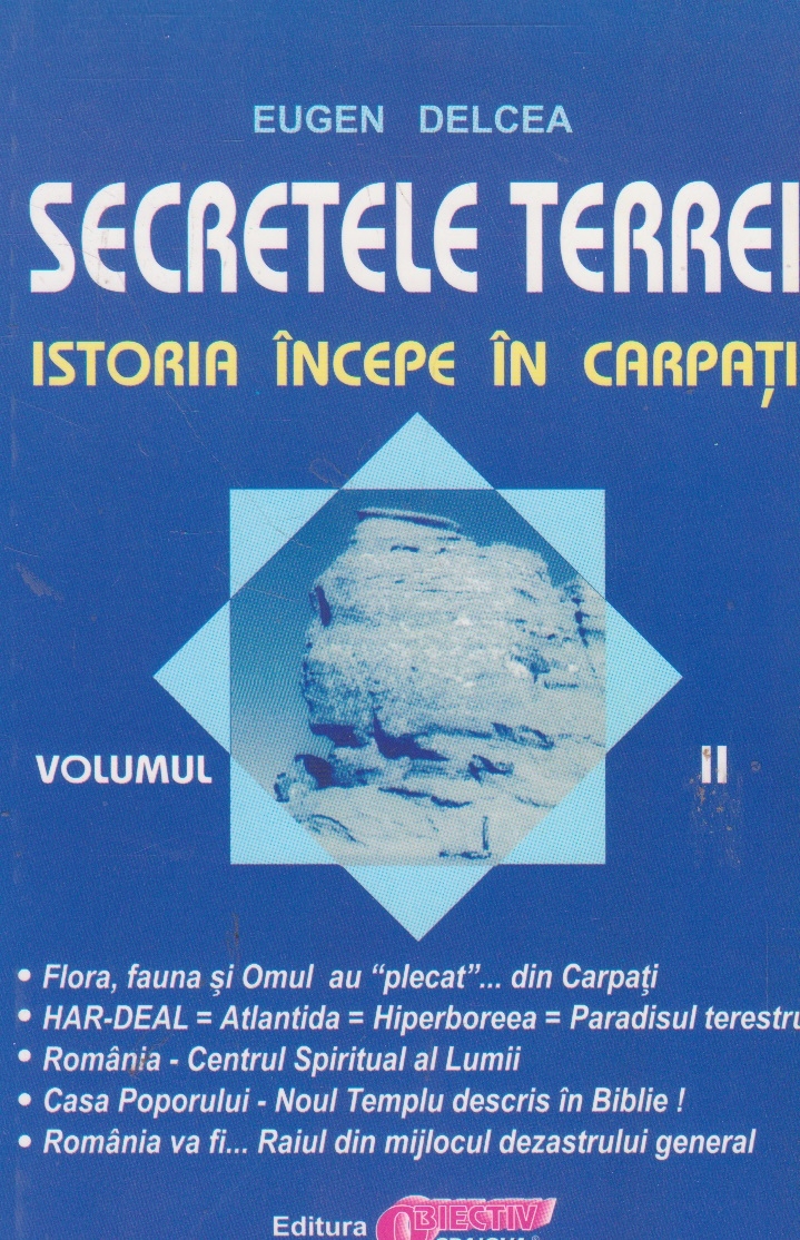 Comandă online Secretele Terrei. Istoria incepe in Carpati, Volumul al II-lea la 15,90 lei scrisă de Eugen Delcea, tiparită la editura Obiectiv cu un număr de 188 pagini categorie Senzational, Diverse. cu plata ramburs sau online cu cardul. Momentan titlul Secretele Terrei. Istoria incepe in Carpati, Volumul al II-lea nu este disponibil însa vă puteți înscrie pentru a fi notificat în momenul reaprovizionarii.