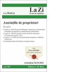 Comandă online Asociatiile de proprietari. Cod 747. Actualizat la 20.10.2021 la 39,00 lei isbn 9786061811397, tiparită la editura CH Beck face parte din colecția LA ZI în anul 2021. Cartea poate fi livrată în circa 2 zile cu plata ramburs sau online cu cardul.