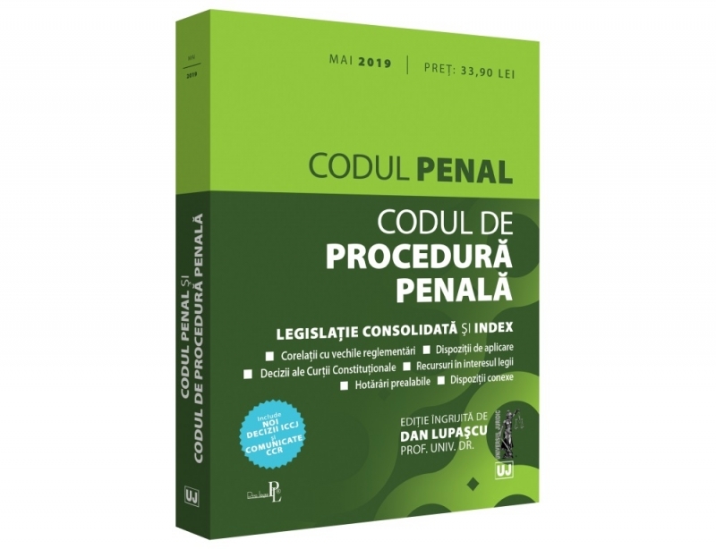 Comandă online cartea "Codul penal si Codul de procedura penala: mai 2019. Editie tiparita pe hartie alba. Include noile decizii ICCJ si comunicate CC" la 35,80 lei isbn 9786063904172 scrisă de Dan Lupascu, tiparită la editura Universul Juridic în anul 2019. Cartea poate fi livrată în circa 2 zile cu plata ramburs sau online cu cardul.