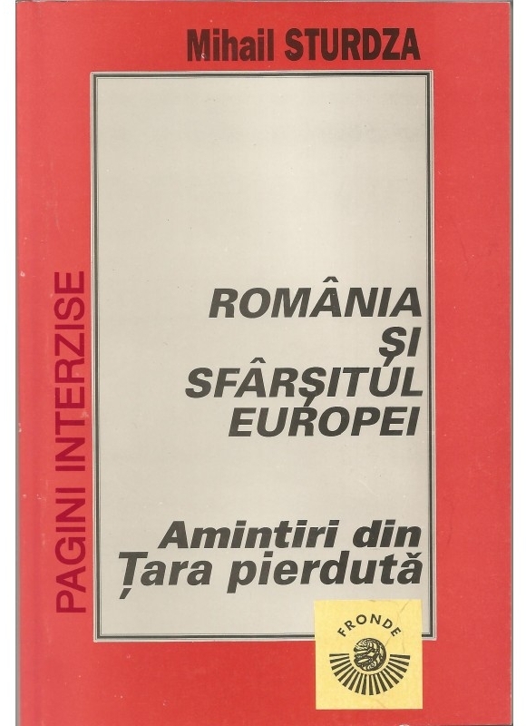 Comandă online cartea "Romania si sfarsitul Europei. Amintiri din Tara pierduta" la 56,98 lei isbn 9739631223 scrisă de Mihail Sturdza, tiparită la editura Fronde în anul 1994. cu plata ramburs sau online cu cardul. Momentan titlul "Romania si sfarsitul Europei. Amintiri din Tara pierduta" nu este disponibil însa vă puteți înscrie pentru a fi notificat în momenul reaprovizionarii.