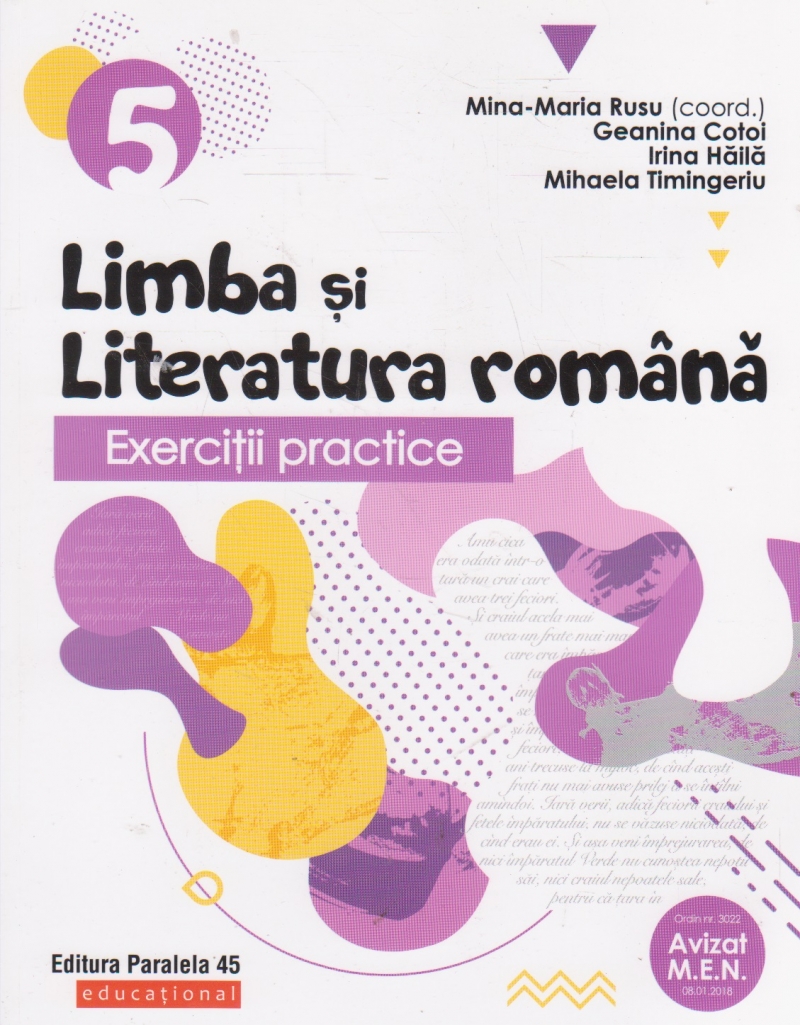 Comandă online Exercitii practice de Limba si Literatura Romana. caiet de lucru. Clasa a V-a. Editia a IV-a la 15,90 lei Mina-Maria Rusu, tiparită la editura Paralela 45 în anul 2020 cu un număr de 176 pagini. cu plata ramburs sau online cu cardul. Momentan titlul Exercitii practice de Limba si Literatura Romana. caiet de lucru. Clasa a V-a. Editia a IV-a nu este disponibil însa vă puteți înscrie pentru a fi notificat în momenul reaprovizionarii.