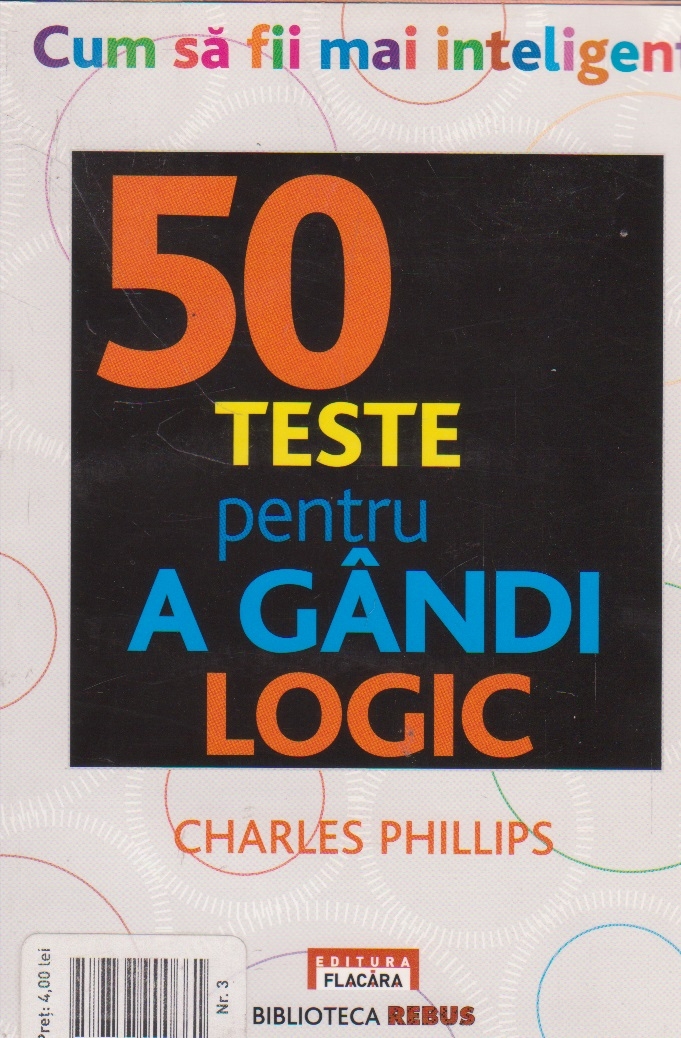 Comandă online cartea "Cum sa fii mai inteligent - 50 teste pentru a gandi logic" la 10,50 lei scrisă de CHARLES PHILLIPS, tiparită la editura Flacara face parte din colecția Flacara-Rebus în anul 2011. cu plata ramburs sau online cu cardul. Momentan titlul "Cum sa fii mai inteligent - 50 teste pentru a gandi logic" nu este disponibil însa vă puteți înscrie pentru a fi notificat în momenul reaprovizionarii.