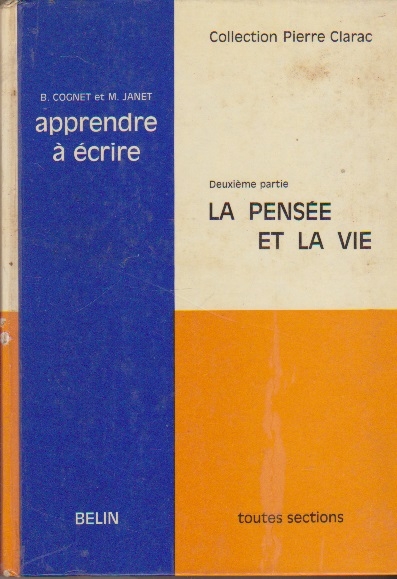 Comandă online cartea "La Pensee Et La Vie - Apprendre a ecrire" la 20,10 lei scrisă de B. Cognet , M. Janet, tiparită la editura Librairie Classique Eugene Belin face parte din colecția Pierre Clarac în anul 1969. Livrare din stoc cu plata ramburs sau online cu cardul.