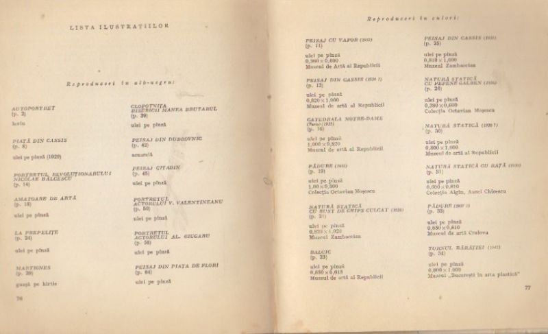 Cartea include 12 reproduceri alb-negru si 25 reproduceri in culori