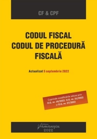 Comandă online Codul fiscal,Codul de procedură fiscală la 93,50 lei isbn 9786062721275, tiparită la editura Hamangiu în anul 2022 cu un număr de 832 pagini. cu plata ramburs sau online cu cardul. Momentan titlul Codul fiscal,Codul de procedură fiscală nu este disponibil însa vă puteți înscrie pentru a fi notificat în momenul reaprovizionarii.