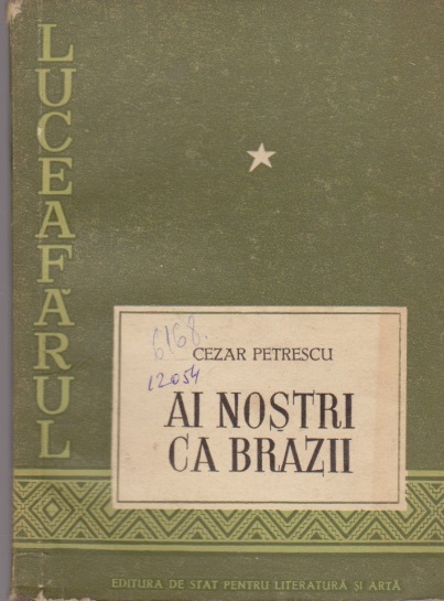 Comandă online cartea "Ai Nostri ca Brazii" la 6,90 lei scrisă de Cezar Petrescu, tiparită la editura Editura de Stat pentru Literatura si Arta face parte din colecția Luceafarul în anul 1955. Livrare din stoc cu plata ramburs sau online cu cardul.