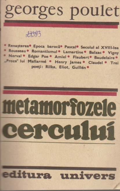 Comandă online Metamorfozele Cercului la 17,50 lei scrisă de Georges Poulet Irina Badescu, tiparită la editura Univers în anul 1987. Livrare din stoc cu plata ramburs sau online cu cardul.