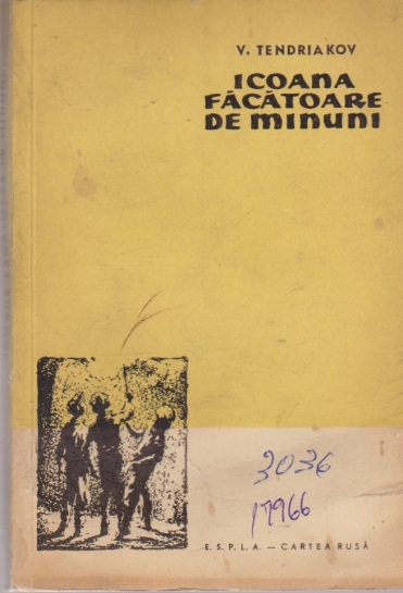 Comandă online cartea "Icoana Facatoare de Minuni - Nuvela" la 10,50 lei scrisă de V. Tendriakov M. Cardas , G. Antimiu, tiparită la editura Cartea rusa în anul 1960. cu plata ramburs sau online cu cardul. Momentan titlul "Icoana Facatoare de Minuni - Nuvela" nu este disponibil însa vă puteți înscrie pentru a fi notificat în momenul reaprovizionarii.