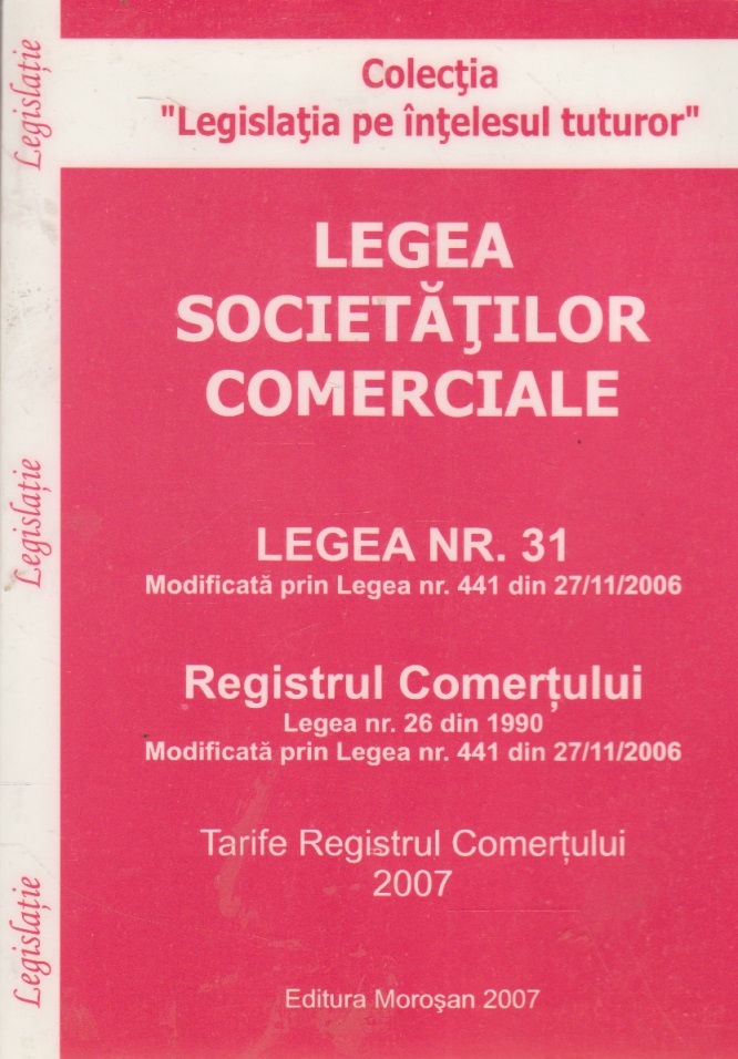 Comandă online cartea "Legea Societatilor Comerciale" la 13,60 lei isbn 9789738986015 Vasile Morosan , Rudolf Schmutzer, tiparită la editura Morosan în anul 2007. cu plata ramburs sau online cu cardul. Momentan titlul "Legea Societatilor Comerciale" nu este disponibil însa vă puteți înscrie pentru a fi notificat în momenul reaprovizionarii.