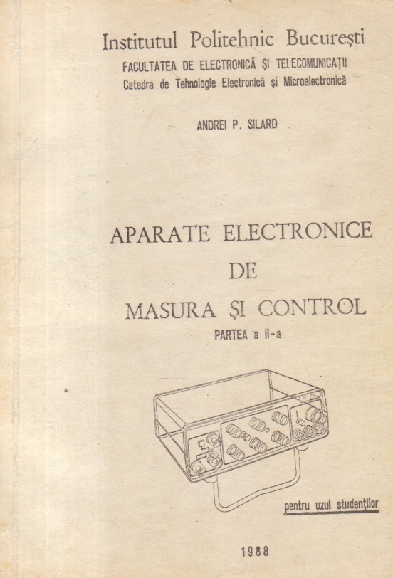 Comandă online cartea "Aparate electronice de masura si control, Partea a II-a (Pentru uzul studentilor)" la 37,00 lei scrisă de Andrei P. Silard, tiparită la editura Institutul Politehnic Bucuresti face parte din colecția Facultatea Electronica în anul 1988. cu plata ramburs sau online cu cardul. Momentan titlul "Aparate electronice de masura si control, Partea a II-a (Pentru uzul studentilor)" nu este disponibil însa vă puteți înscrie pentru a fi notificat în momenul reaprovizionarii.
