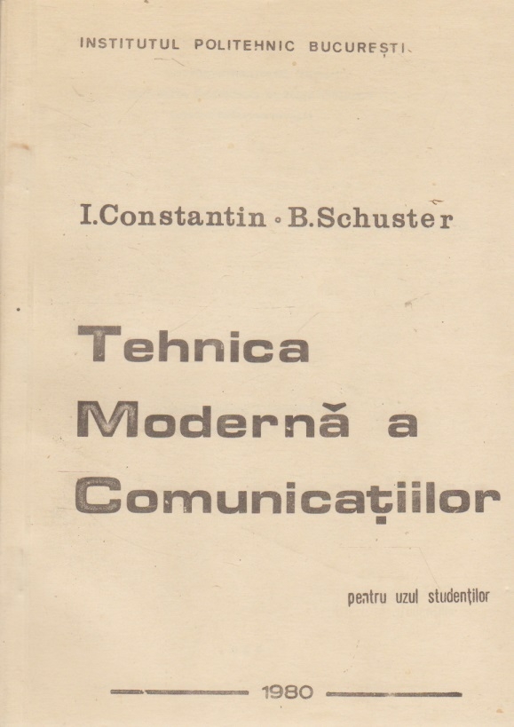 Comandă online cartea "Tehnica Moderna a Comunicatiilor - Pentru uzul studentilor" la 13,60 lei scrisă de I. Constantin , B. Schuster, tiparită la editura Institutul Politehnic Bucuresti în anul 1980 cu un număr de 238 pagini. cu plata ramburs sau online cu cardul. Momentan titlul "Tehnica Moderna a Comunicatiilor - Pentru uzul studentilor" nu este disponibil însa vă puteți înscrie pentru a fi notificat în momenul reaprovizionarii.