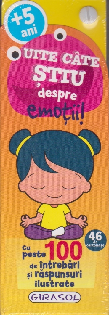 Comandă online Uite câte ştiu despre emoţii! : +5 ani,cu peste 100 de întrebări şi răspunsuri ilustrate la 27,50 lei isbn 9786060242871, tiparită la editura Girasol în anul 2018 cu un număr de 46 pagini. Cartea poate fi livrată în circa 7 zile cu plata ramburs sau online cu cardul.