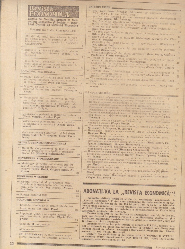 Comandă online Revista Economica, Nr. 1/1988 la 6,20 lei, tiparită la editura Revista Economica în anul 1988 cu un număr de 32 pagini categorie Economie, Reviste / Almanahuri. cu plata ramburs sau online cu cardul. Momentan titlul Revista Economica, Nr. 1/1988 nu este disponibil însa vă puteți înscrie pentru a fi notificat în momenul reaprovizionarii.