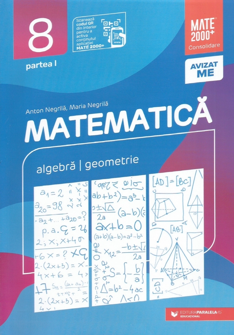 Comandă online Matematica. Algebra, geometrie. Clasa a VIII-a. Consolidare. Partea I (Editia a XII-a, anul scolar 2023-2024) la 32,56 lei isbn 9789734738885 scrisă de Anton Negrila , Maria Negrila, tiparită la editura Paralela 45 în anul 2023. cu plata ramburs sau online cu cardul. Momentan titlul Matematica. Algebra, geometrie. Clasa a VIII-a. Consolidare. Partea I (Editia a XII-a, anul scolar 2023-2024) nu este disponibil însa vă puteți înscrie pentru a fi notificat în momenul reaprovizionarii.