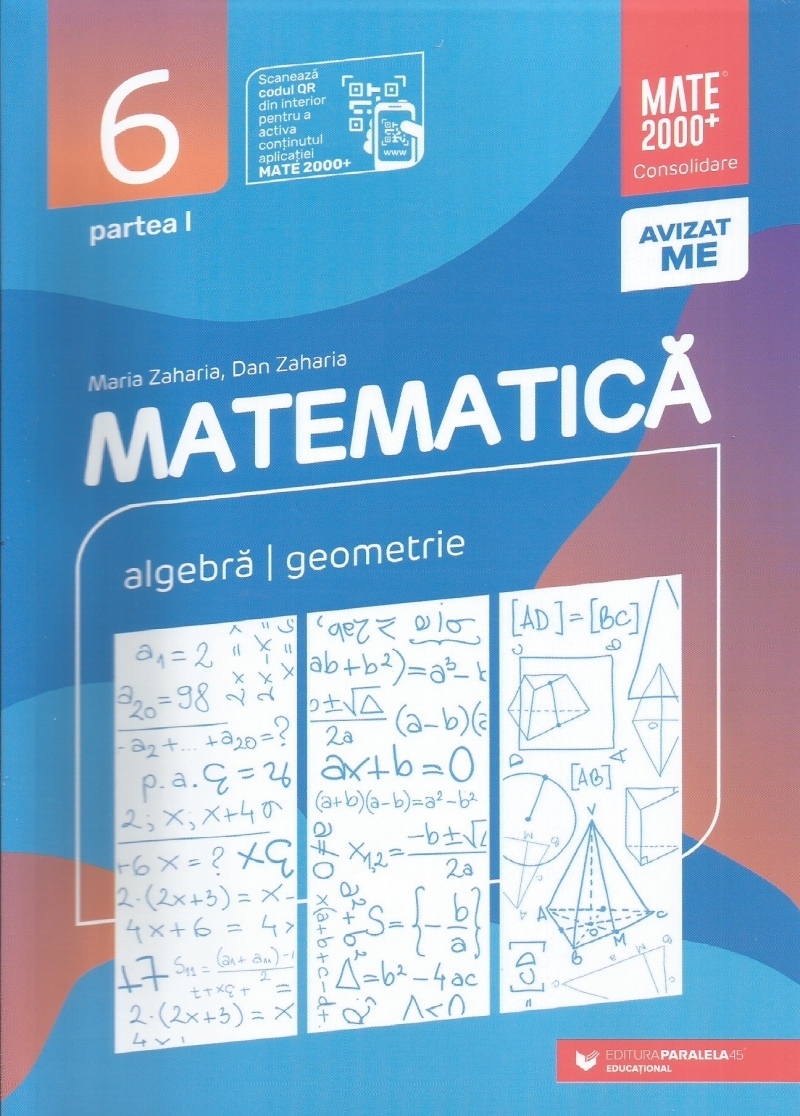 Comandă online Matematica. Algebra, geometrie. Clasa a VI-a. Consolidare. Partea I (Editia a XII-a, anul scolar 2023-2024) la 32,56 lei isbn 9789734738847 scrisă de Maria Zaharia , Dan Zaharia, tiparită la editura Paralela 45 în anul 2023. cu plata ramburs sau online cu cardul. Momentan titlul Matematica. Algebra, geometrie. Clasa a VI-a. Consolidare. Partea I (Editia a XII-a, anul scolar 2023-2024) nu este disponibil însa vă puteți înscrie pentru a fi notificat în momenul reaprovizionarii.