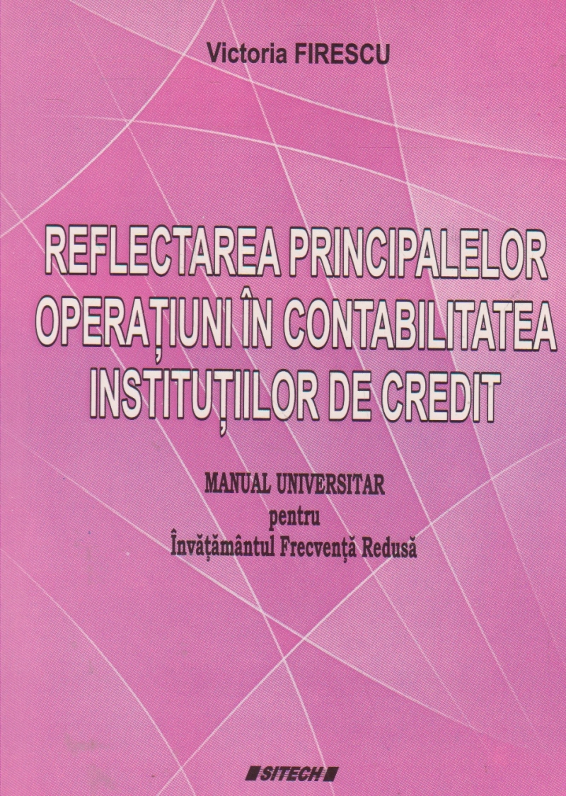 Comandă online Reflectarea principalelor operatiuni in contabilitatea institutiilor de credit. Manual universitar pentru invatamantul frecventa redusa la 20,10 lei scrisă de Victoria Firescu, tiparită la editura Sitech în anul 2012 cu un număr de 220 pagini. Livrare din stoc cu plata ramburs sau online cu cardul.