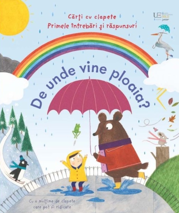Comandă online cartea "De unde vine ploaia? : cărţi cu clapete - primele întrebări şi răspunsuri pentru cei mici" la 139,59 lei isbn 9786060963318 scrisă de Katie Daynes , Usborne Books, tiparită la editura Univers Enciclopedic Junior în anul 2023. cu plata ramburs sau online cu cardul. Momentan titlul "De unde vine ploaia? : cărţi cu clapete - primele întrebări şi răspunsuri pentru cei mici" nu este disponibil însa vă puteți înscrie pentru a fi notificat în momenul reaprovizionarii.