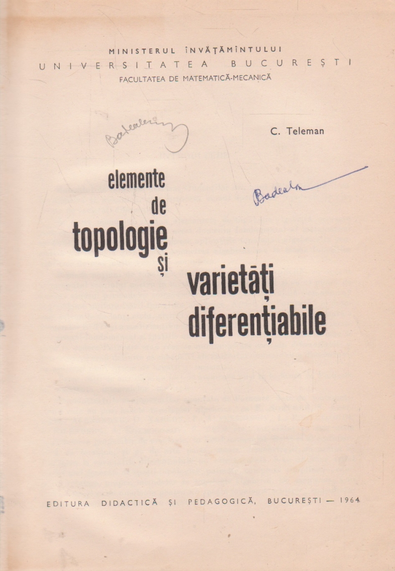 Comandă online cartea "Elemente de topologie si varietati diferentiabile" la 30,70 lei scrisă de C. Teleman, tiparită la editura Didactica si Pedagogica în anul 1964 cu un număr de 290 pagini. cu plata ramburs sau online cu cardul. Momentan titlul "Elemente de topologie si varietati diferentiabile" nu este disponibil însa vă puteți înscrie pentru a fi notificat în momenul reaprovizionarii.