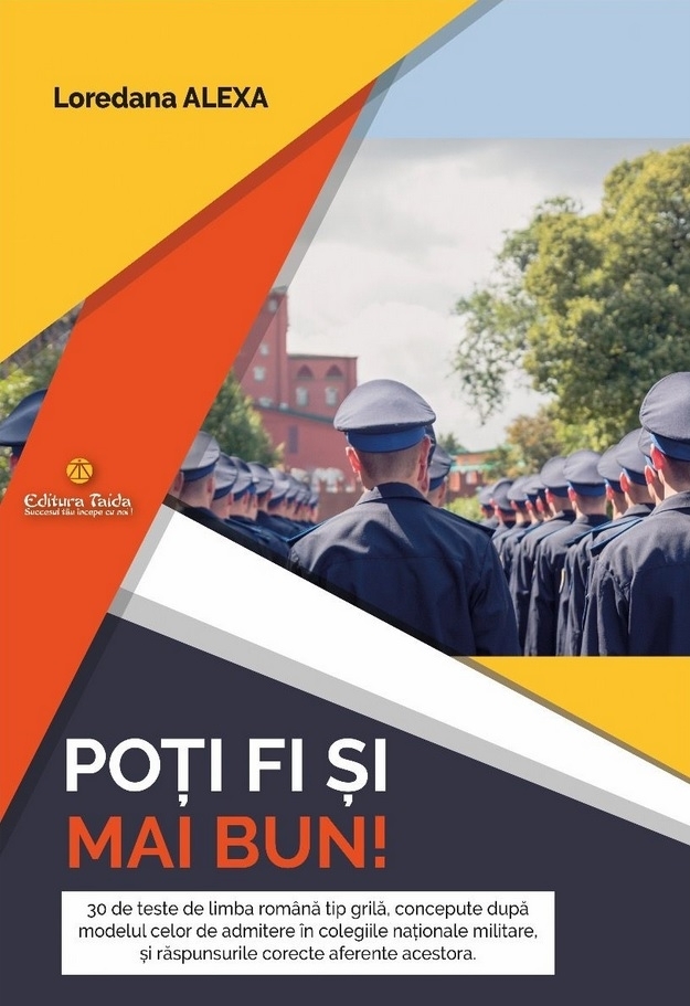 Comandă online cartea "Poţi fi şi mai bun! : 30 de teste de limba română tip grilă, concepute după modelul celor de admitere în colegiile naţionale militare, şi răspunsurile corecte aferente acestora" la 30,80 lei isbn 9786065146969 scrisă de Loredana Alexa, tiparită la editura Taida în anul 2025. Cartea poate fi livrată în circa 2 zile cu plata ramburs sau online cu cardul.
