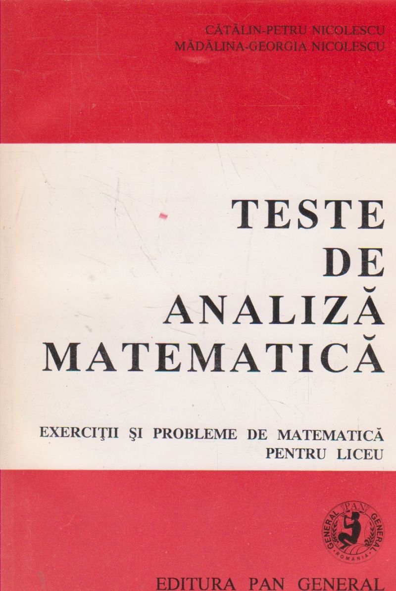 Comandă online cartea "Teste de analiza matematica. Exercitii si probleme de matematica pentru liceu" la 30,70 lei scrisă de Catalin-Petru Nicolescu, tiparită la editura Pan General în anul 1994 cu un număr de 624 pagini. cu plata ramburs sau online cu cardul. Momentan titlul "Teste de analiza matematica. Exercitii si probleme de matematica pentru liceu" nu este disponibil însa vă puteți înscrie pentru a fi notificat în momenul reaprovizionarii.