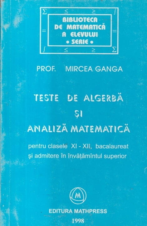 Comandă online Teste de algebra si analiza matematica pentru clasele XI-XII, bacalaureat si admitere in invatamintul superior (Ganga) la 15,90 lei scrisă de Mircea Ganga, tiparită la editura Mathpress face parte din colecția Biblioteca de matematica a elevului în anul 1998. cu plata ramburs sau online cu cardul. Momentan titlul Teste de algebra si analiza matematica pentru clasele XI-XII, bacalaureat si admitere in invatamintul superior (Ganga) nu este disponibil însa vă puteți înscrie pentru a fi notificat în momenul reaprovizionarii.