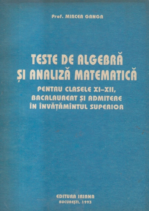 Comandă online Teste de algebra si analiza matematica pentru clasele XI-XII, bacalaureat si admitere in invatamintul superior (Ganga, Editie 1993) la 26,40 lei scrisă de Mircea Ganga, tiparită la editura Iriana în anul 1993 cu un număr de 224 pagini. cu plata ramburs sau online cu cardul. Momentan titlul Teste de algebra si analiza matematica pentru clasele XI-XII, bacalaureat si admitere in invatamintul superior (Ganga, Editie 1993) nu este disponibil însa vă puteți înscrie pentru a fi notificat în momenul reaprovizionarii.