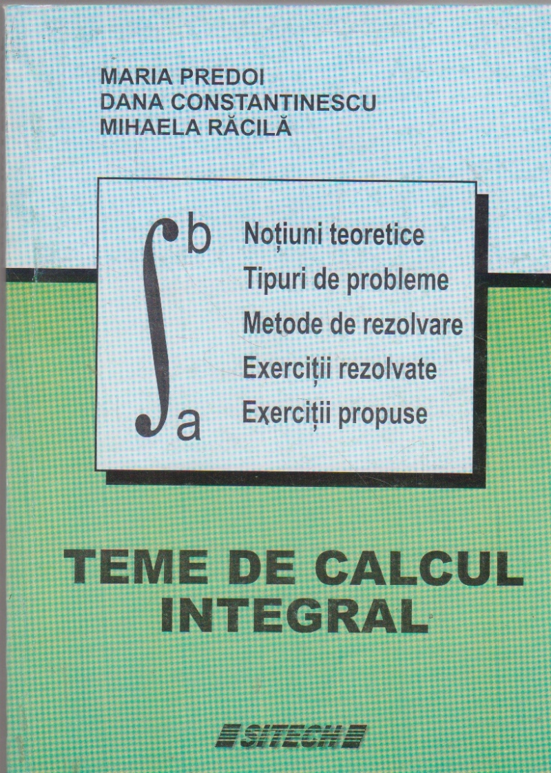 Comandă online Teme de calcul integral (Predoi ...) la 20,10 lei scrisă de Maria Predoi , Dana Constantinescu, tiparită la editura Sitech în anul 2003 cu un număr de 305 pagini. cu plata ramburs sau online cu cardul. Momentan titlul Teme de calcul integral (Predoi ...) nu este disponibil însa vă puteți înscrie pentru a fi notificat în momenul reaprovizionarii.