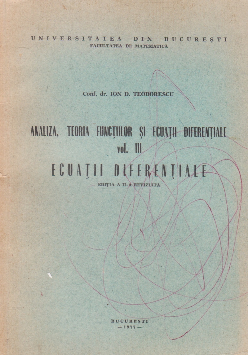 Comandă online Analiza, teoria functiilor si ecuatii diferentiale, Volumul al III-lea, Ecuatii diferentiale la 41,20 lei scrisă de Ion D. Teodorescu, tiparită la editura Universitatea din Bucuresti în anul 1977 cu un număr de 370 pagini. cu plata ramburs sau online cu cardul. Momentan titlul Analiza, teoria functiilor si ecuatii diferentiale, Volumul al III-lea, Ecuatii diferentiale nu este disponibil însa vă puteți înscrie pentru a fi notificat în momenul reaprovizionarii.