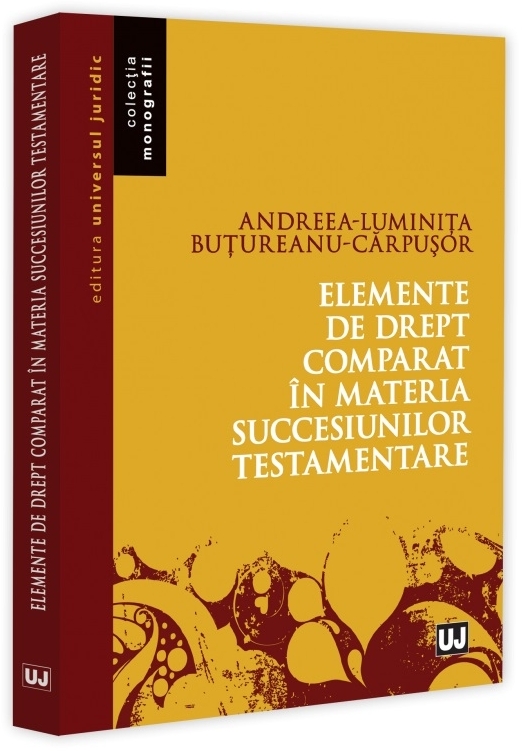 Comandă online Elemente de drept comparat în materia succesiunilor testamentare la 85,43 lei isbn 9786063916786 scrisă de Andreea-Luminiţa Buţureanu-Cărpuşor, tiparită la editura Universul Juridic în anul 2025. Cartea poate fi livrată în circa 2 zile cu plata ramburs sau online cu cardul.