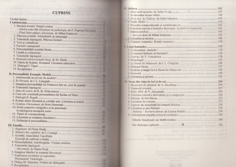 Potrivit programei, manualul structureaza cele trei domenii (literatura, limba si comunicare, concepte operationale) in module integrative menite sa puna in evidenta dominanta lui tematica atat de atragatoare si pentru elevi si pentru profesori, literatura si viata; placerea textului. Manualul urmareste sa deprinda elevul cu intelegerea si producerea de texte orale si scrise, sa-l invete sa-si puna probleme, sa intre in dialog activ si interactiv.